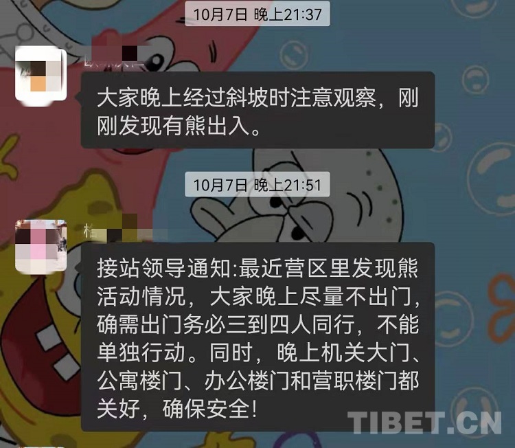 “站起來(lái)比人還高,脖子上還戴項(xiàng)鏈了”“剛剛一直盯著我,我拔腿就跑了,晚上大家還是注意”......這些是該站微信工作群“守邊人”里的真實(shí)對(duì)話。不僅是在三道拐?qǐng)?zhí)勤點(diǎn),該站機(jī)關(guān)所在的迪斯崗和口岸一線的友誼橋執(zhí)勤點(diǎn),也有黑熊長(zhǎng)期徘徊于此。因?yàn)楹谛艽蠖嗍窃谝归g出沒,民警們?cè)诩油臧嗪髸r(shí)常能碰見它們的身影,在單位微信群中,也能不時(shí)收到有關(guān)“熊出沒”的警示提醒。