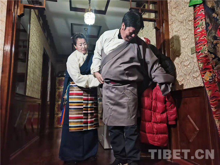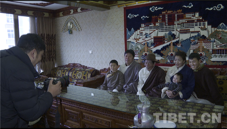 圖為通夏村黨支部書(shū)記布嘎一家換藏裝準(zhǔn)備拍全家福