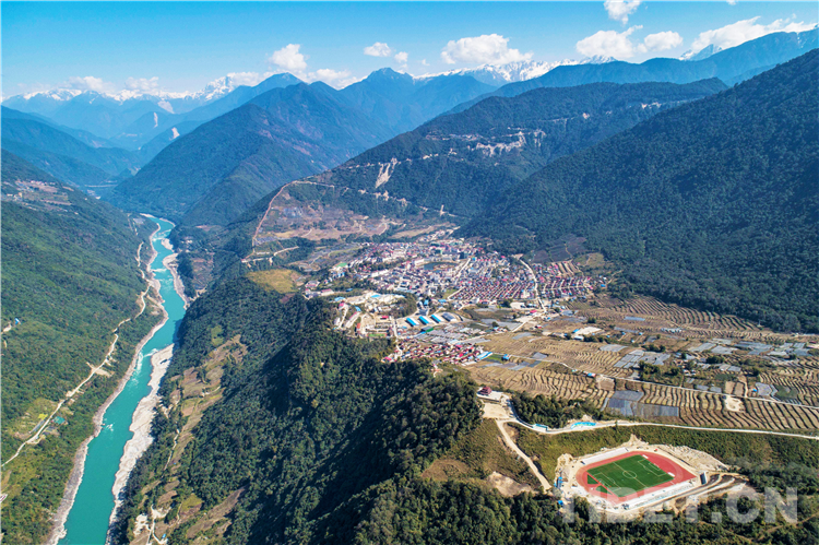 圖為群山環(huán)繞的墨脫縣城