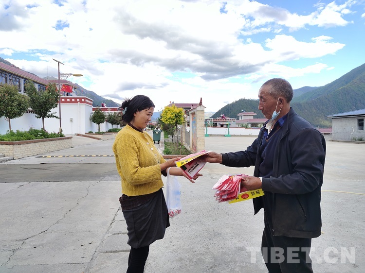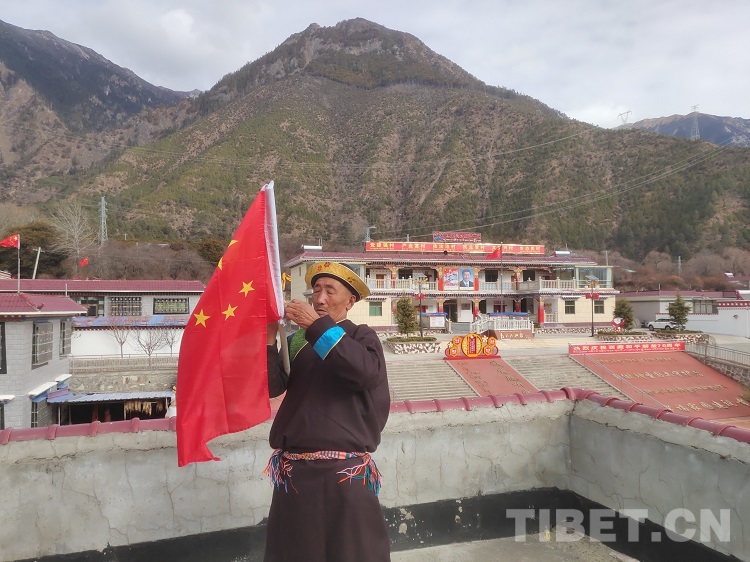 在中國共產(chǎn)黨成立100周年之際,公覺旦巴拿著自己買的國旗在村口開始“蹲點”,當(dāng)有村民經(jīng)過村口時,他便上前發(fā)放新的國旗,督促大家:“中國共產(chǎn)黨成立100年即將到來,趕緊把家里的舊國旗換了,以嶄新的面貌迎接‘七一’,要知道,我們現(xiàn)在的美好生活都是黨給的!”村民們總是雙手接過國旗,一邊道謝,一邊微笑著點頭表示認(rèn)同。