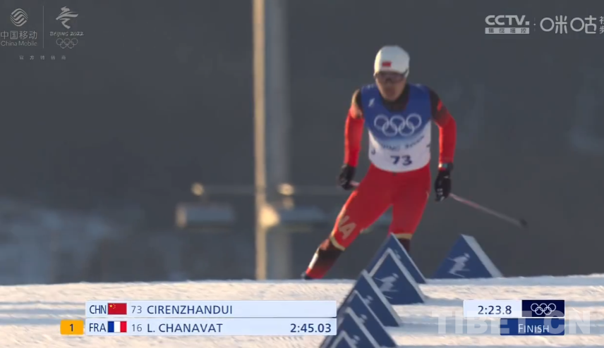 男子個人短距離(自由技術(shù))資格賽共有90位運動員參加,前30名晉級1/4決賽。首次參加冬奧會的次仁占堆出發(fā)技術(shù)不錯,他在前0.6公里計時點滑出了1分23秒2的成績,接下來,次仁占堆控制住節(jié)奏,獲得第60名。