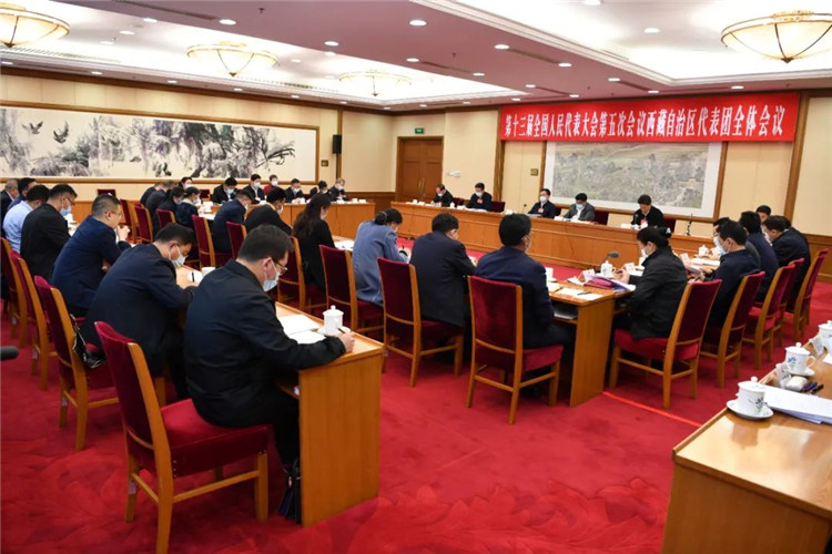 圖為3月5日,十三屆全國人大五次會(huì)議西藏自治區(qū)代表團(tuán)在駐地舉行全體會(huì)議,審議李克強(qiáng)總理所作的政府工作報(bào)告。旦增西旦 攝
