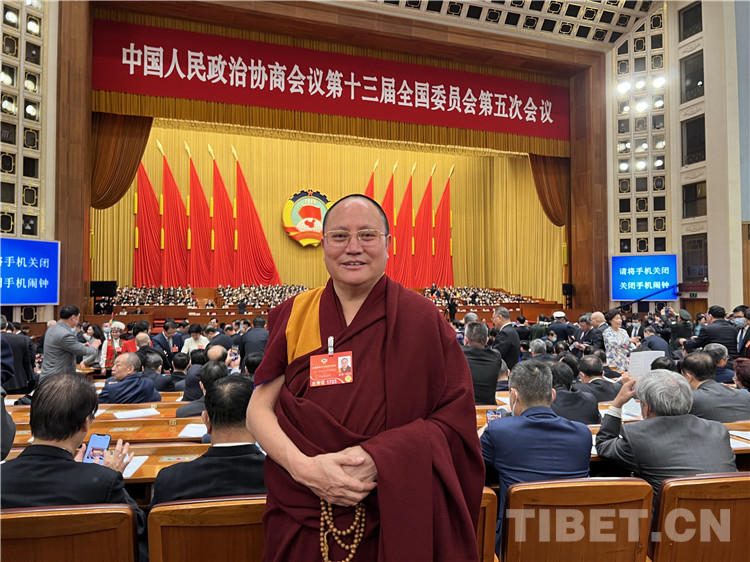 圖為全國政協(xié)委員、四川省阿壩州人大常委會副主任達扎·尕讓托布旦拉西降措