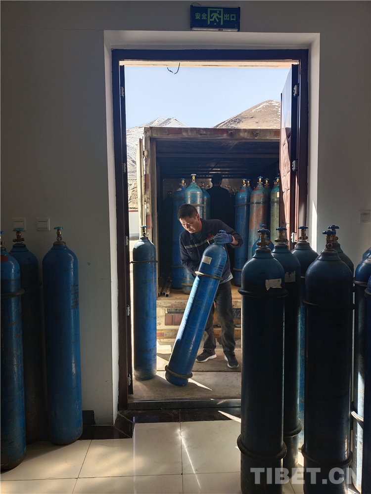 到達(dá)站區(qū)后,奎萬祥還會為職工提供“送貨上門”的服務(wù),挨個把氧氣罐送到每一間房間和辦公室。有的辦公樓和職工宿舍不止一層高,一樓還可以靠工具,二樓則需要奎萬祥“賣力氣”了。扛著55公斤裝重的氧氣罐上樓,奎萬祥有自己的秘訣——咬牙憋氣和一鼓作氣,他說:“這么高的海拔,如果中途歇下來換氣,氣息和力氣很可能會接不上”。送完氧氣罐,奎萬祥還要把空的氧氣罐再帶回車上,整個過程往往會讓他精疲力盡。