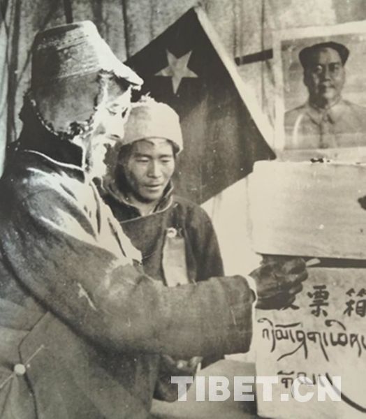 1965年,西藏自治區(qū)第一屆人民代表大會第一次會議在拉薩召開,翻身農奴第一次獲得了平等的選舉權與被選舉權,拉開了成為國家治理參與者的序幕。圖為曲水縣翻身農奴扎西旺堆生平第一次行使當家做主的權利:參加投票選舉鄉(xiāng)人民代表 翻拍:孫健