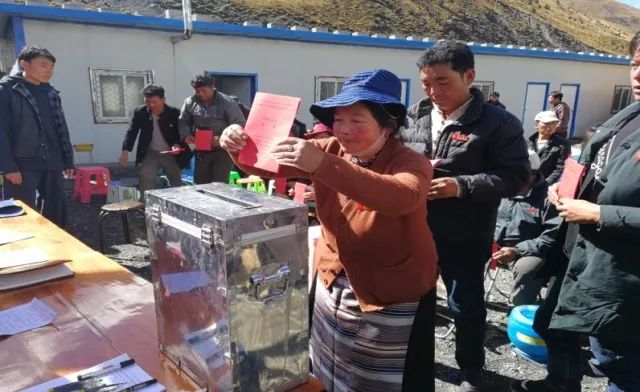 圖為西藏自治區(qū)那曲市比如縣村(居)組織換屆選舉中人們正在投票 圖片來源:網(wǎng)信比如微信公眾號