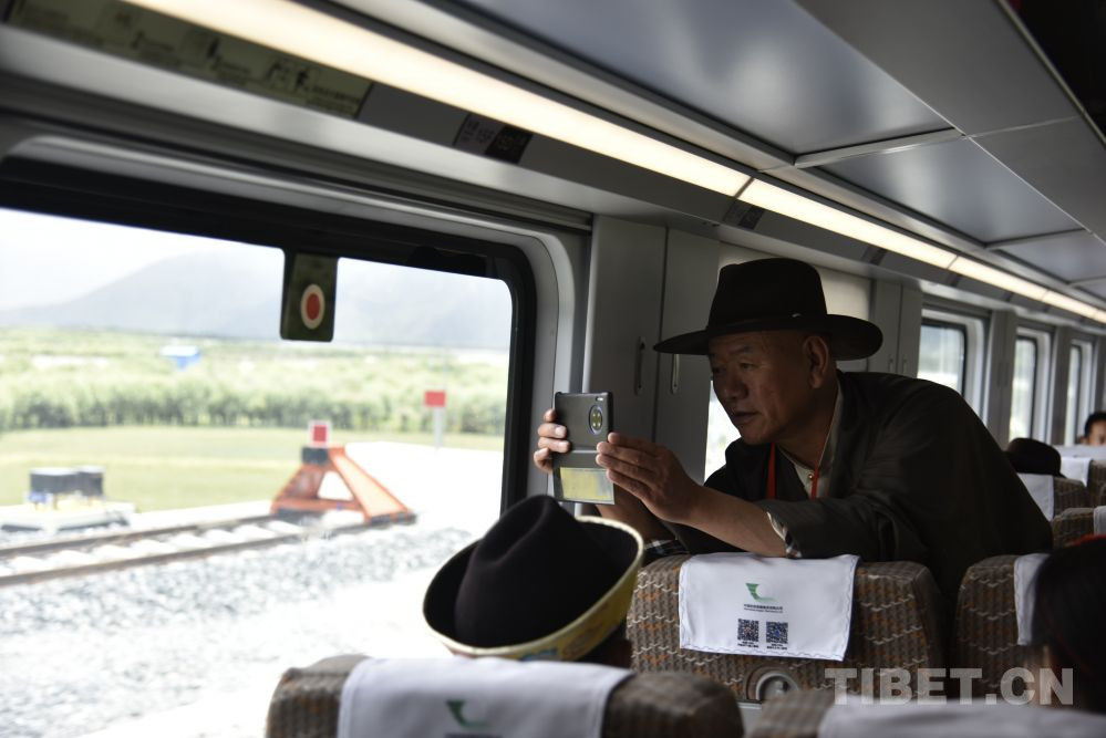 圖為2021年6月25日復興號高原雙源動力集中動車組即將抵達西藏林芝站,乘客拍照 攝影:王媛媛