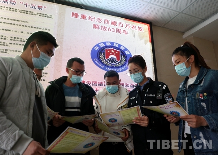 在西藏出入境邊防檢查總站執(zhí)法調(diào)查支隊(duì)辦證大廳,辦證室民警結(jié)合辦證室群眾多、人流量大的實(shí)際,開(kāi)展以“攜手法律宣傳,共建平安邊境”為主題的宣傳活動(dòng)。通過(guò)懸掛宣傳標(biāo)語(yǔ)、設(shè)置新舊西藏對(duì)比圖片專欄、發(fā)放“新舊西藏對(duì)比圖及涉邊法律法規(guī)”為主題的宣傳單等多種渠道,講解西藏百萬(wàn)農(nóng)奴翻身得解放的歷史背景,讓更多游客群眾了解西藏民主改革以來(lái)波瀾壯闊的發(fā)展史和翻天覆地的新變化,銘記只有中國(guó)共產(chǎn)黨才能領(lǐng)導(dǎo)西藏各族群眾過(guò)上幸福美好的生活。