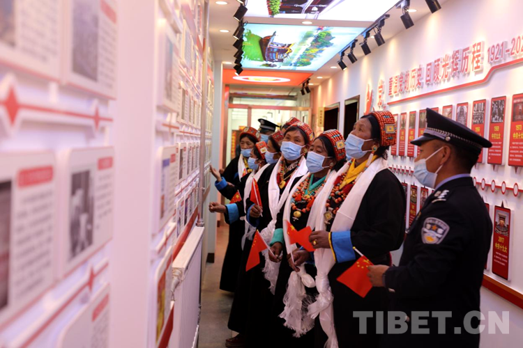 圖為邊民群眾與民警參觀(guān)九號(hào)執(zhí)勤點(diǎn)黨建活動(dòng)室 攝影:格熱