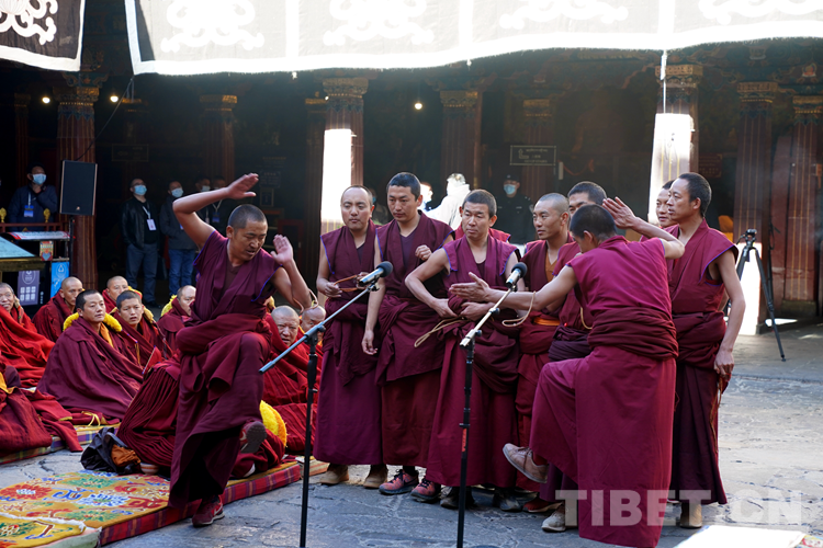 圖為西藏自治區(qū)2022年度藏傳佛教學(xué)經(jīng)僧人考核晉升格西拉讓巴學(xué)位立宗答辯暨頒證儀式現(xiàn)場(chǎng) 攝影:王淑