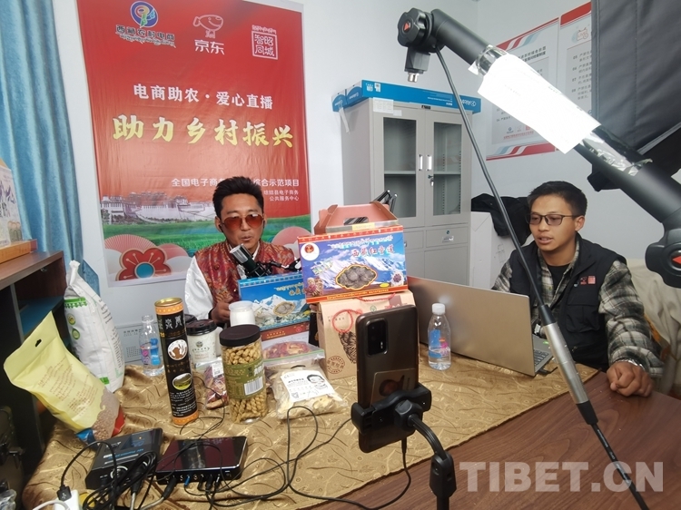 圖為主播在瓊結縣農(nóng)村快遞分撥配送中心工作室內為當?shù)靥禺a(chǎn)“代貨” 西藏自治區(qū)交通運輸廳供圖