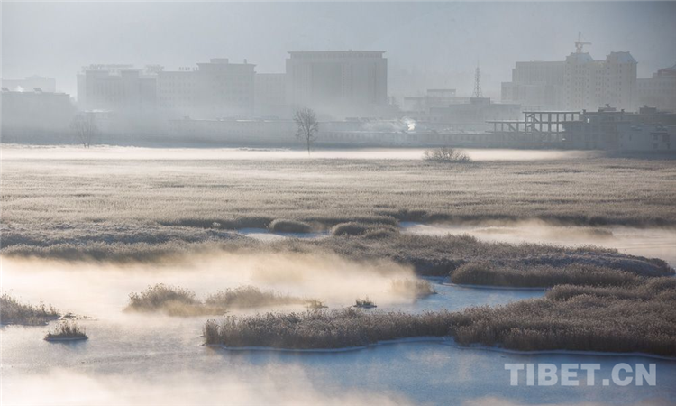 日出時(shí)分拉魯濕地升騰起的薄霧。攝影:趙耀