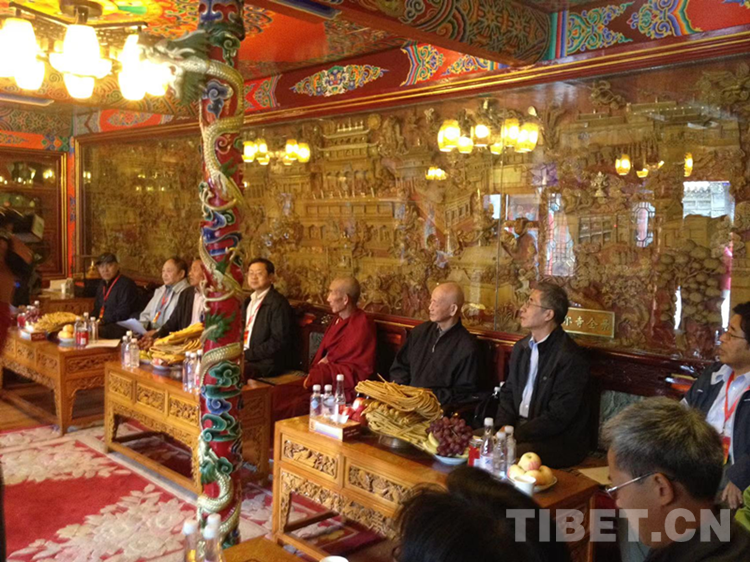 圖為2014年考察期間,專家學(xué)者們與塔爾寺寺管會領(lǐng)導(dǎo)交流