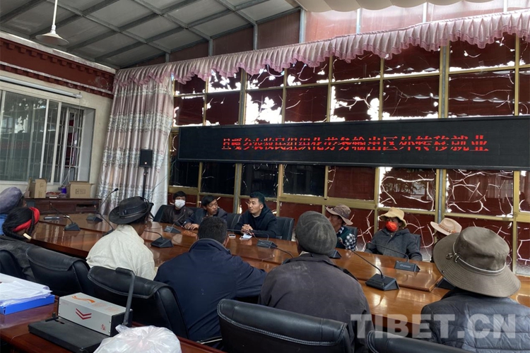 圖為旦嘎鄉(xiāng)組織開展2022年赴新疆區(qū)外“組團(tuán)式”就業(yè)暨第一批跨區(qū)“點(diǎn)對點(diǎn)”組織化勞務(wù)輸出服務(wù)