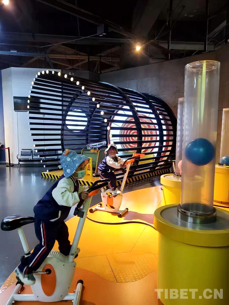 活動中,孩子們在西藏自然科學(xué)博物館深入認(rèn)識了西藏的生靈草木、萬水千山,近距離觀看曾經(jīng)在西藏生活過的遠(yuǎn)古大型生物昌都龍、喜馬拉雅魚龍等動物化石,領(lǐng)略雪豹、藏羚羊、桫欏等高原生命之美。孩子們在科技館的科學(xué)互動展項(xiàng)區(qū)也玩得不亦樂乎,他們不僅親身感受了動滑輪、動畫的形成等科學(xué)奧秘,還沉浸在了高仿真機(jī)器人、VR虛擬現(xiàn)實(shí)、4D影片帶來的全新高科技體驗(yàn)中。為了活動形式更加豐富,西藏自然科學(xué)博物館還特意安排大家參觀了“黨領(lǐng)導(dǎo)下的科學(xué)家”主題展覽。
