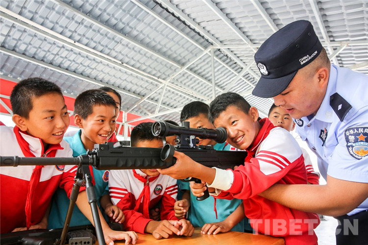 圖為背崩邊境派出所民警在執(zhí)勤點(diǎn)組織警營(yíng)開(kāi)放日活動(dòng)