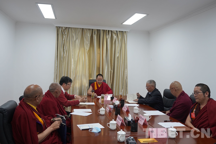 座談會上,班禪結(jié)合自身經(jīng)歷,暢談了在黨的民族宗教政策的光輝照耀下,西藏宗教信仰自由,正常宗教活動得到充分保障,各宗教各教派弘揚(yáng)濟(jì)世利民、和諧平等、與時俱進(jìn)的理念,精進(jìn)學(xué)修、深研經(jīng)典,促進(jìn)宗教與社會主義社會相適應(yīng)。藏傳佛教界各教派人士通過大量藏傳佛教健康發(fā)展的事例和深切感受,各抒己見、暢所欲言。全體與會人員結(jié)合各自領(lǐng)域?qū)嶋H,就藏傳佛教健康傳承、教義教規(guī)闡釋、依法管理宗教事務(wù)和宗教界開展“三個意識”教育等方面進(jìn)行了廣泛深入的交流。
