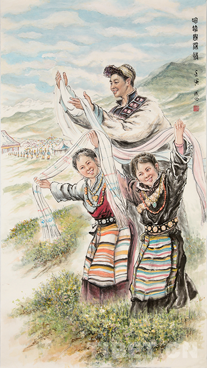 圖為張兆林國畫作品《哈達(dá)寄深情》 圖片由西藏文化博物館提供
