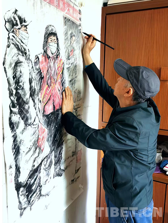 “我愛人看到了咱們館(西藏文化博物館)發(fā)的征稿啟事,然后就把這條信息發(fā)到家庭群里邊。過了不久,我父親說他畫了一張畫,讓我看看畫得怎么樣。我當(dāng)時(shí)還很意外,本來想鼓勵(lì)我兒子畫一張,結(jié)果我兒子沒畫,老爺子畫得還很好?!?月21日,張兆林先生將自己的作品《哈達(dá)寄深情》捐贈(zèng)給西藏文化博物館,張兆林之子張安誠將作品送至博物館并收到了捐贈(zèng)證書。