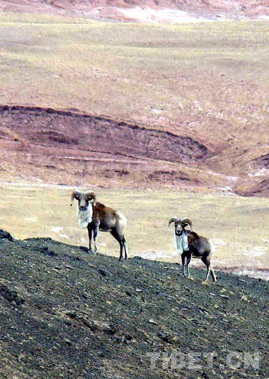 這是棲息生活在羌塘國(guó)家級(jí)自然保護(hù)區(qū)的國(guó)家保護(hù)動(dòng)物盤(pán)羊(唐召明2009年8月7日攝)
