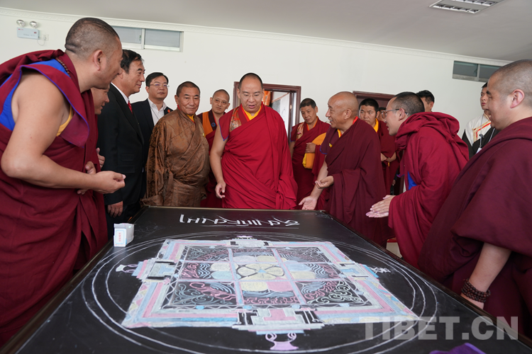 中國(guó)西藏網(wǎng)訊 近日,全國(guó)政協(xié)常委、中國(guó)佛教協(xié)會(huì)副會(huì)長(zhǎng)、中國(guó)佛教協(xié)會(huì)西藏分會(huì)會(huì)長(zhǎng)班禪額爾德尼?確吉杰布來(lái)到位于西藏自治區(qū)拉薩市曲水縣的西藏佛學(xué)院考察調(diào)研,為“建設(shè)美麗幸福西藏 共圓偉大復(fù)興夢(mèng)想”石碑揭牌,為學(xué)員講經(jīng)授法、進(jìn)行長(zhǎng)壽灌頂,并為僧尼摸頂賜福。