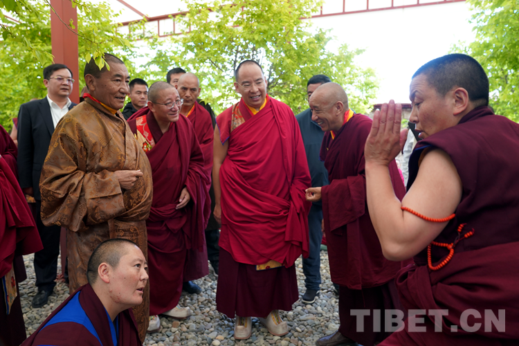 班禪表示,今天來(lái)到學(xué)院看到無(wú)論是硬件上、軟件上,都功德具足、法喜圓滿。我想一切的外在條件都已經(jīng)萬(wàn)事俱備,只需要我們?nèi)w師生奮發(fā)圖強(qiáng),珍惜把握學(xué)習(xí)時(shí)光?!白8W(xué)院師生們健康長(zhǎng)壽,用我們現(xiàn)有的人生為祖國(guó)、為民族、為中國(guó)特色社會(huì)主義的建設(shè)、為藏傳佛教中國(guó)化做出更多的貢獻(xiàn)。祝愿大家六時(shí)吉祥、十相自在、功德圓滿!”