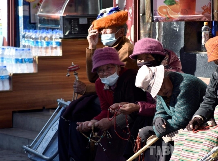 圖為八廓街曬太陽的群眾