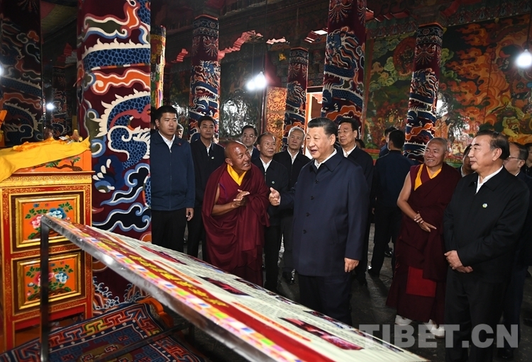 圖為習(xí)近平總書(shū)記在哲蚌寺察看措欽大殿。西藏自治區(qū)黨委宣傳部提供