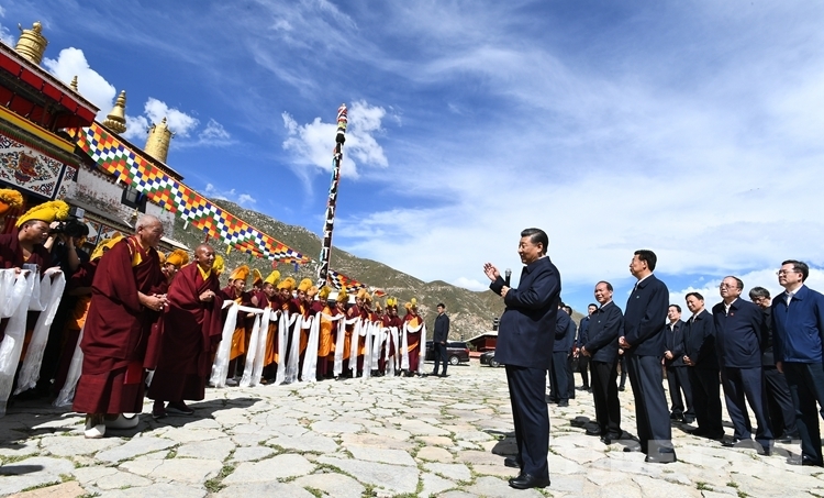 圖為習(xí)近平總書(shū)記在哲蚌寺考察。西藏自治區(qū)黨委宣傳部提供