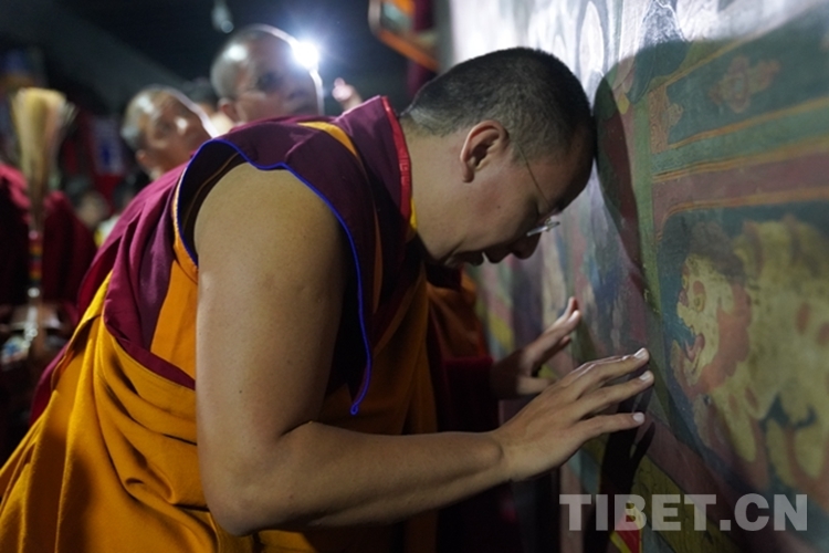 圖為班禪在貢嘎曲德寺禮佛講經(jīng) 攝影:王淑
