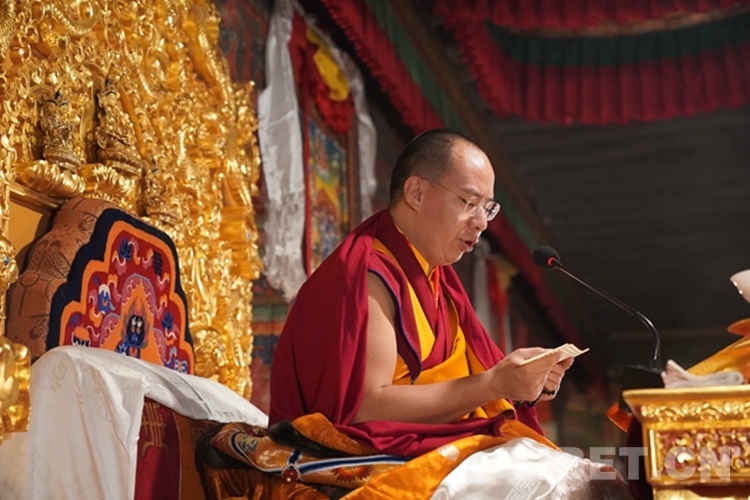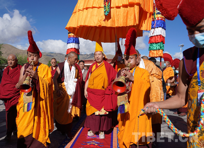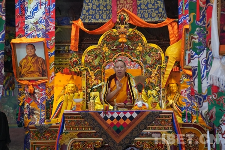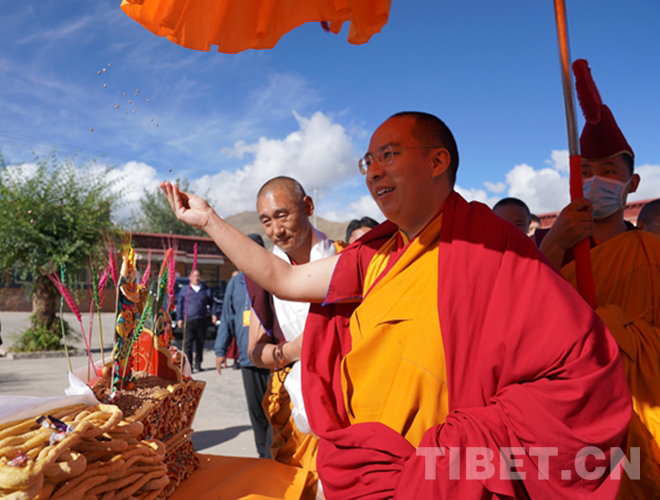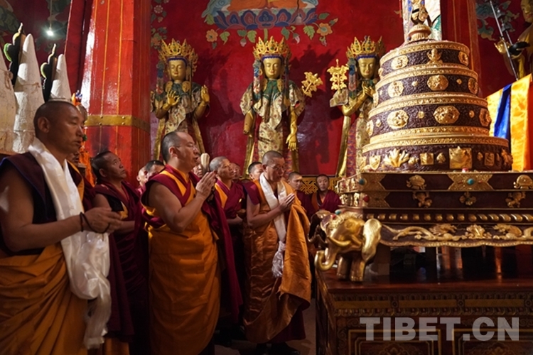 當日,全國政協(xié)常委、中國佛教協(xié)會副會長、中國佛教協(xié)會西藏分會會長班禪額爾德尼?確吉杰布前往山南市隆子縣扎果寺禮佛講經(jīng)。