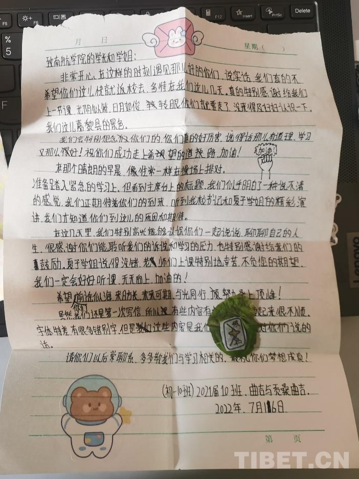 此次嘉黎之行,讓我真切地感受到了西藏同胞的純樸、熱情、善良。孩子們課堂上的認(rèn)真思考、仔細(xì)演算、積極回答都給我們留下了深刻的印象。我們一起過林卡,一起吃飯,到家里做客……無數(shù)的言行舉止之間都流露出他們的講禮貌、重禮儀。我們也結(jié)識了為這片熱土奉獻(xiàn)多年青春的公安政委、校長、書記等等,正是他們的無私付出,讓雪域高原欣欣向榮,富強(qiáng)美麗。未來,我們也將與嘉黎縣中學(xué)建立長期的合作,號召更多南航學(xué)子為當(dāng)?shù)貛ハM猓?/p>