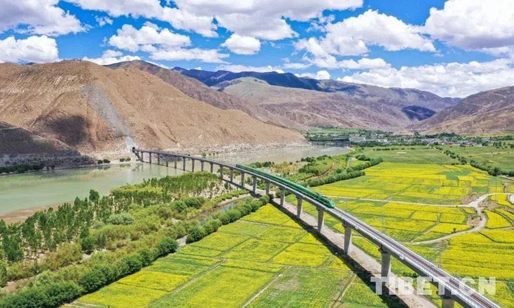 圖為途經(jīng)西藏自治區(qū)山南市境內(nèi)的拉林鐵路。