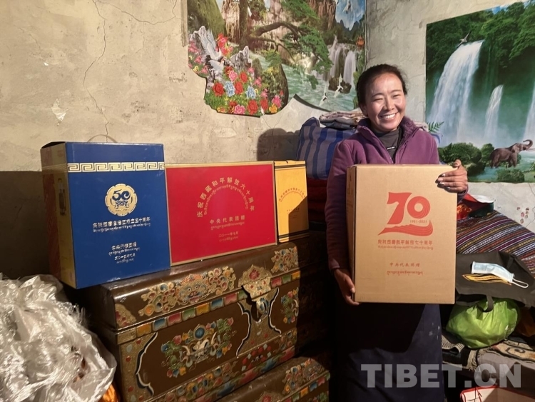 查斯小心翼翼地從屋里拿出一個(gè)盒子,從中一一取出幾只精致的酥油茶碗,盛滿干果,與切瑪盒一起擺在屋里的醒目位置。這幾只茶碗正是7年前中央代表團(tuán)在西藏自治區(qū)成立50周年時(shí)向西藏各族群眾贈(zèng)送的禮物之一。