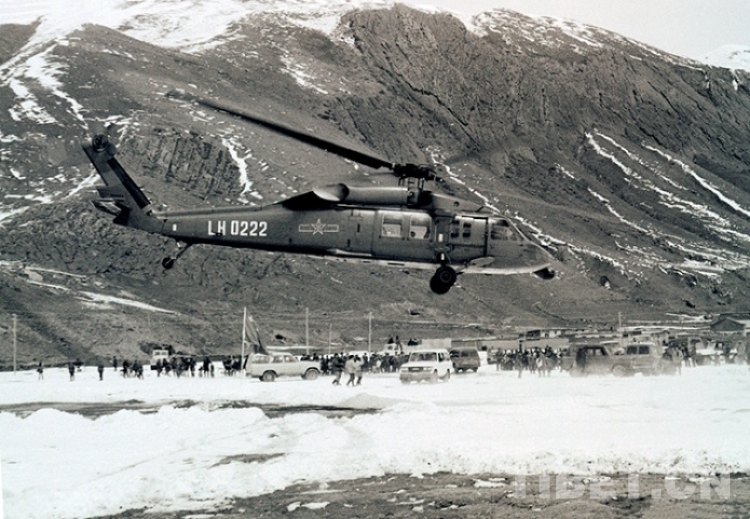 旋即,首都北京來電,中央派運輸機救災空投物資。3月27日,銀鷹展翅藏北高原,給被大雪圍困的牧民投下了糌粑、青稞、燃料、衣物和雪鏡等必需品。不幾日,中央又電令兩架“黑鷹”直升飛機投入到緊張的抗災救災工作中。