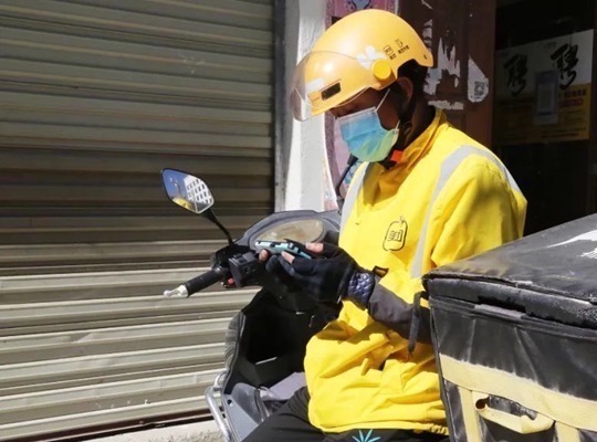圖為山南市一名外賣(mài)騎手在收聽(tīng)收看黨的二十大開(kāi)幕盛況