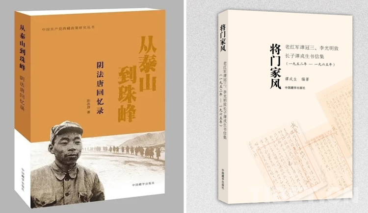 圖為西藏自治區(qū)黨委原書記陰法唐的回憶錄《從泰山到珠峰》和開國(guó)中將譚冠三寫給長(zhǎng)子譚戎生的家書集《將門家風(fēng)》書影