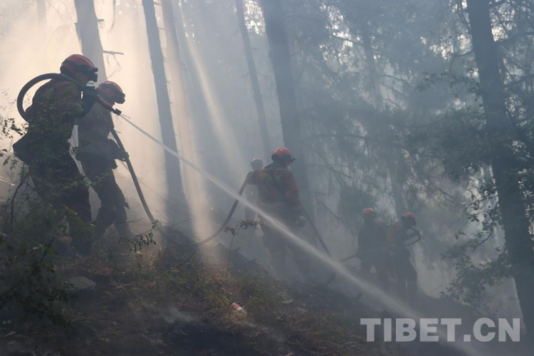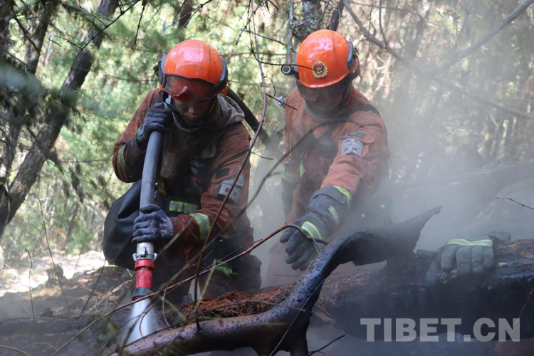 火場上,不說有感天動地的故事,但是那種“無畏火魔、不怕犧牲、舍我其誰、團(tuán)結(jié)協(xié)作”的故事卻到處可見。那天,我們在接警后,第一時(shí)間趕赴現(xiàn)場,當(dāng)看到一條長長的火線猶如一條蜿蜒的巨龍盤旋在空檔村山腰,火舌在大風(fēng)助威下翻滾著向南側(cè)撲去時(shí),飛哥和我各帶領(lǐng)10名黨員骨干以南北兩翼夾擊的陣勢迎戰(zhàn)火魔。在高達(dá)2800米的原始林區(qū),夜里溫度接近-5℃,槍頭手高琪已全身上下濕透并伴隨冰片的出現(xiàn),隱約透著讓人冷顫的寒光,顫抖的身體讓槍頭不斷左搖右擺,但他毅然肩扛槍頭,勇斗火魔。撲救完畢后,剛要準(zhǔn)備休整,中隊(duì)接到殲滅山頂火點(diǎn)的任務(wù),火情就是命令,指戰(zhàn)員背著沉重的裝備在近70-80度的亂石陡坡上,抓著樹枝一步步向上攀爬,16年兵齡的王建紅在爬山過程中使勁喘息,即使空氣中彌漫著飛舞的灰,也為吸取更多的氧氣保持體力;接近山頂時(shí),一顆直徑約80cm的滾石從山頂滾落,體型弱小的二級消防士曹橋在緊促的避險(xiǎn)哨音中采取緊急避險(xiǎn)措施成功躲避,滾石與他擦肩而過,但危險(xiǎn)的環(huán)境未能抑制他戰(zhàn)斗的決心。中隊(duì)指戰(zhàn)員暢談此次滅火作戰(zhàn)感受時(shí),都紛紛笑言:“我們從海拔2300米打到了3700米,相當(dāng)于從察隅到了拉薩?!?1日,中隊(duì)轉(zhuǎn)戰(zhàn)火場西南線,此時(shí)經(jīng)過5天的連續(xù)奮戰(zhàn),指戰(zhàn)員的思考能力和興奮的感覺消失殆盡,只剩下機(jī)械式行走的軀體,膝蓋有舊傷的戰(zhàn)斗班班長王明因?yàn)槌?fù)荷運(yùn)動已疼痛難忍,但他在咬牙堅(jiān)持。班長宋遠(yuǎn)金、扎西歐珠主動擔(dān)當(dāng)不畏艱險(xiǎn),從不到2300多米的地方,背著滅火裝備和滿滿的水桶,爬到4000米的山頂排除隱患,清理煙點(diǎn)。