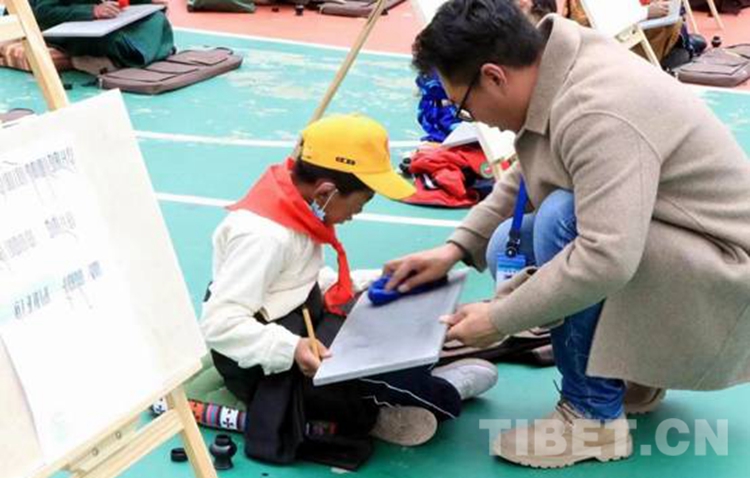 圖為西藏自治區(qū)那曲市比如縣羊秀鄉(xiāng)的學生正在創(chuàng)作美術(shù)作品 攝影:米瑪旺久