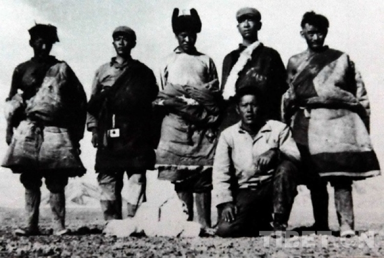 他們馬不停蹄地向色務(wù)庫加會(huì)合地點(diǎn)挺進(jìn),8月16日到達(dá)預(yù)定地點(diǎn)。第二天,沒有見到其他考察工作組來會(huì)合,他們開始在周圍尋找。第三天,洛桑丹珍看到一二公里外似乎有個(gè)人影在晃動(dòng),便警惕地躲在一塊巖石后觀察。當(dāng)洛桑丹珍認(rèn)出來者是尼彭,便迎上前去,而尼彭都快走到洛桑丹珍眼前了也沒認(rèn)出他來。因?yàn)樗囊路缫哑茽€不堪,臉被曬得像塊黑炭。直到洛桑丹珍大聲喊著他的名字,尼彭方才醒悟過來,驚訝地叫著,“唉呀呀,你都成了無人區(qū)的野人了!”
