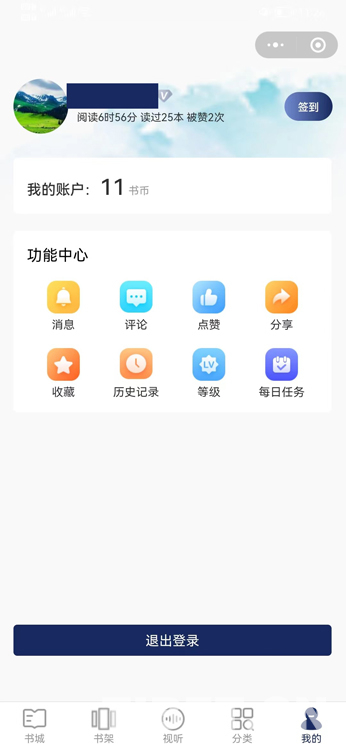 “掌讀西藏”為移動應(yīng)用平臺,主要是面向關(guān)注中國西藏發(fā)展的世界各地受眾提供中國西藏有關(guān)主題的珍貴圖書電子版。平臺菜單主要有書城、書架、視聽、分類、我的5個模塊組成,其中“我的”里面有功能中心、夜間模式、顯示統(tǒng)計、邀請好友、意見反饋、更多設(shè)置等模塊,功能中心含消息、評論、點贊、分享、收藏、歷史記錄、會員等級、每日任務(wù)等個人信息。