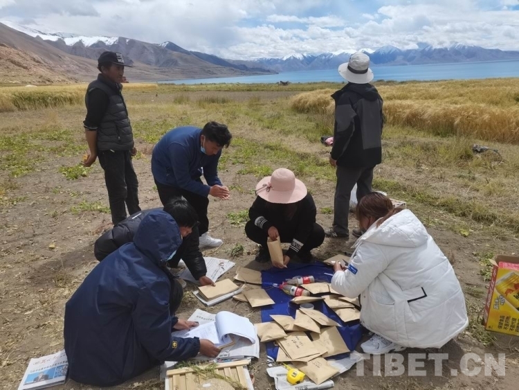 圖為西藏自治區(qū)農(nóng)牧科學(xué)院草業(yè)科學(xué)研究所科技人員在那曲市尼瑪縣文布南村開展農(nóng)作物第三次普查工作