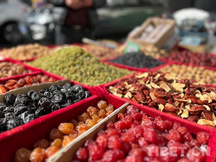 圖為年貨市場里的各類干果 攝影:德吉卓瑪