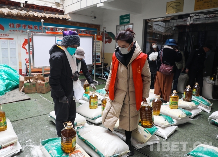 中國西藏網(wǎng)訊 近日,在西藏自治區(qū)拉薩市城關(guān)區(qū)八廓街道魯固社區(qū)居委會的院子里,不時(shí)傳來陣陣歡聲笑語,在院子的正中間,一袋袋大米、面粉,一桶桶食用油碼放整齊。