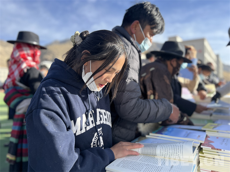 在送“書籍” 現(xiàn)場(chǎng),《西藏文學(xué)》《西藏文藝》《邦錦梅朵》三個(gè)編輯部工作人員為現(xiàn)場(chǎng)群眾和當(dāng)?shù)?span style="text-align: center; background-color: rgb(253,242,234)">干部贈(zèng)送書籍,當(dāng)?shù)厝罕姾蛯W(xué)生們紛紛前來(lái)翻看尋找自己喜歡的書籍,大家人手幾本書。“我平時(shí)喜歡閱讀藏文文學(xué)作品,這次要了兩本文學(xué)相關(guān)書籍拿回家閱讀”17歲的益西巴珍說(shuō)。據(jù)了解,此次活動(dòng)西藏文聯(lián)向熱愛閱讀的群眾和學(xué)生共贈(zèng)送1500本(冊(cè))文藝書籍和期刊。