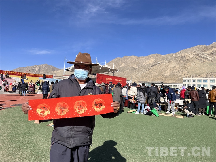 “我來(lái)自那曲安多縣,在森布日生活已有近一年,這里氣候暖,基礎(chǔ)設(shè)施齊全,真是趕上了好政策”66歲的多布杰說(shuō),他還主動(dòng)拿起書法家現(xiàn)場(chǎng)書寫并贈(zèng)送給他的吉祥對(duì)聯(lián)說(shuō):“今天真是很開心,觀看了一場(chǎng)精彩的節(jié)目,還得到了書法家寫的‘扎西德勒’吉祥對(duì)聯(lián),這個(gè)我要貼在家里的門窗上”。