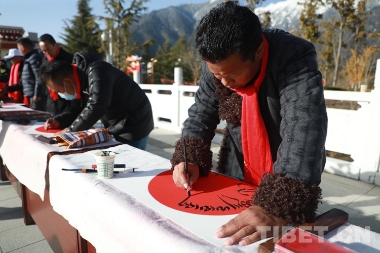 在林芝市藏醫(yī)院工作的巴桑次仁,是林芝市文聯(lián)書法家協(xié)會(huì)會(huì)員。當(dāng)天一大早,林芝市文聯(lián)書法家協(xié)會(huì)的各位書法家揮毫潑墨,不停地為群眾寫下新年祈福和愿望。現(xiàn)場(chǎng)群眾簇?fù)碛^摩,與書法家們認(rèn)真交流,臉上不時(shí)揚(yáng)起幸福的笑容。據(jù)悉,活動(dòng)當(dāng)天,書法家協(xié)會(huì)共送出100余副春聯(lián)、150余幅字畫。