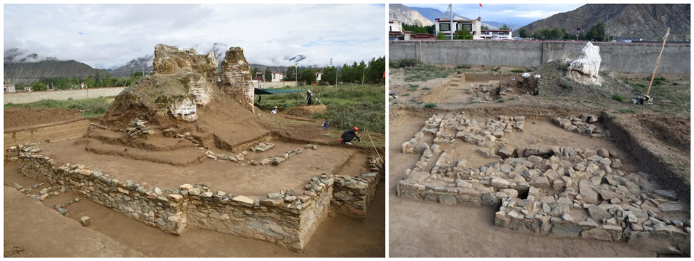圖為西藏曲水溫江多遺址西南塔塔基(左)和東北塔塔基(右) 圖片來源:國(guó)家文物局供圖拼合