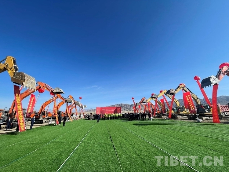圖為日喀則市2023年重點(diǎn)項(xiàng)目集中開復(fù)工儀式現(xiàn)場