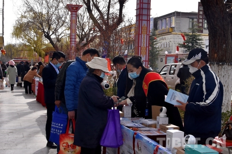 圖為活動(dòng)現(xiàn)場(chǎng)工作人員為前來(lái)咨詢(xún)的市民講解如何分辨產(chǎn)品的真?zhèn)巍z影:次旦拉姆